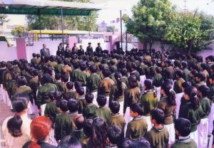 The school morning assembly has unique features. It sets the tone for the whole day by directing the thought of pupils towards moral and spiritual values. Students of the house on duty present various short items every day which serve as food for thought for them and enhance their humanistic and aesthetic sensibility. There is mass singing (English & Hindi), prayers, thought for the day, news along with the National Song and National Anthem.